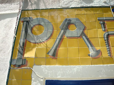 Como podemos observar pelas imagens, junto da primeira letra P da palavra "parafusos", dois azulejos estão soltos e prontos a cair ou serem levados.
